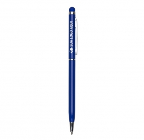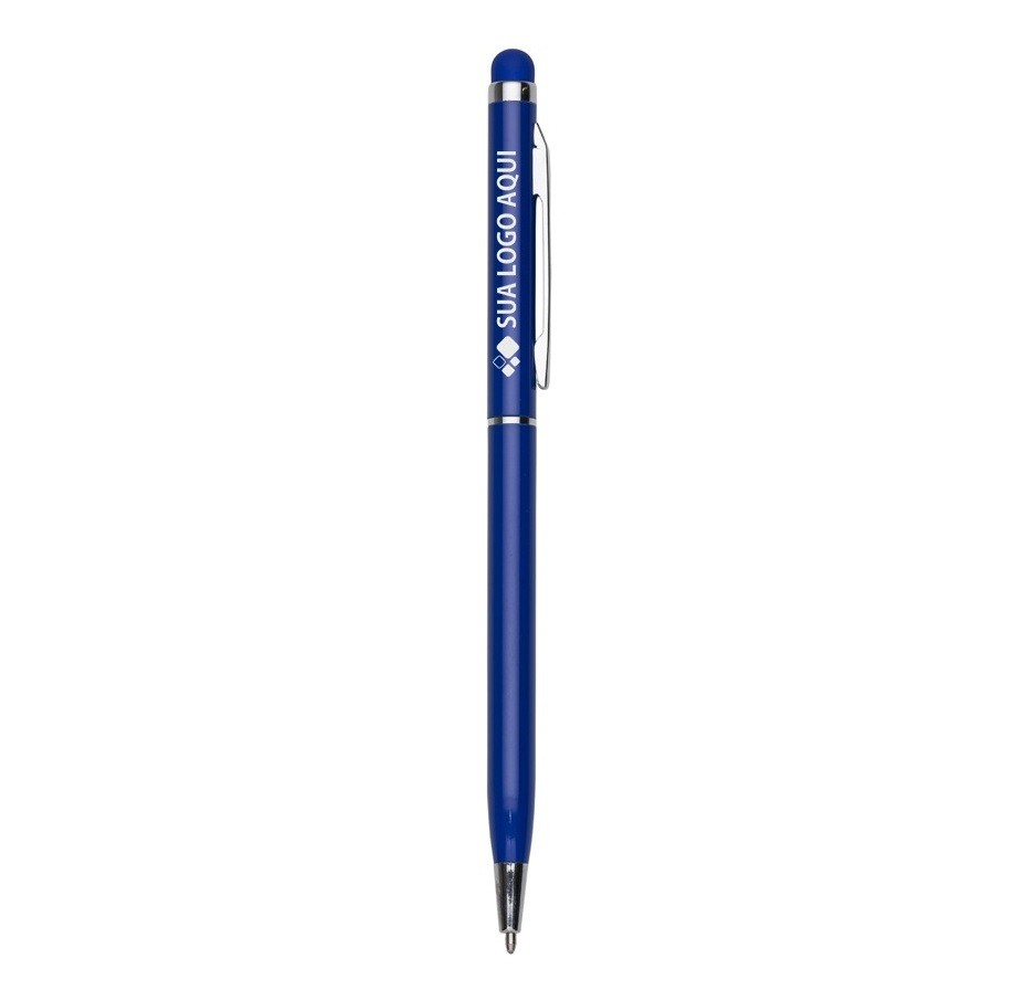 Caneta metálica com touch screen, carga esferográfica azul e acionamento por rotação. Personalização laser em 1 face.