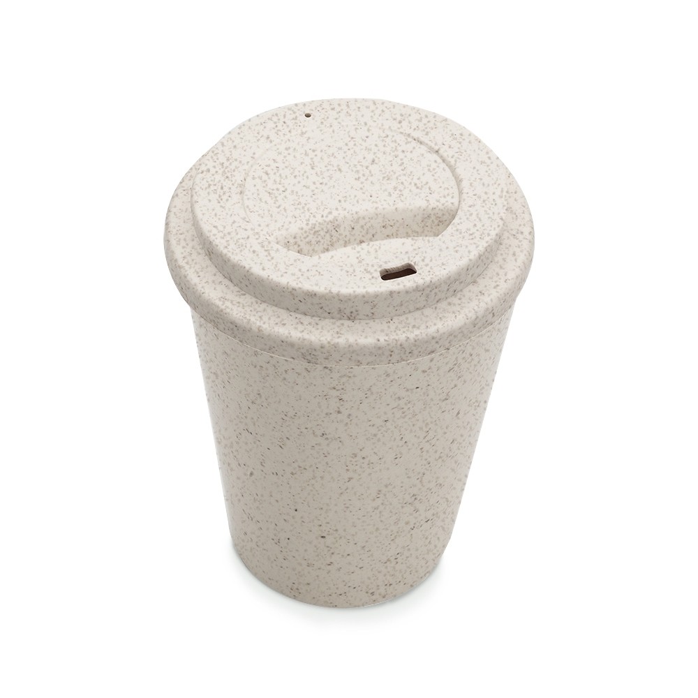 Copo fibra de arroz e polipropileno com capacidade de 450ml livre de BPA, possui tampa com bocal. Personalização em 1 face. Medidas aproximadas: Altura: 13,6cm | Largura: 9,4cm | Circunferência: 26,1cm | Peso: 80g.