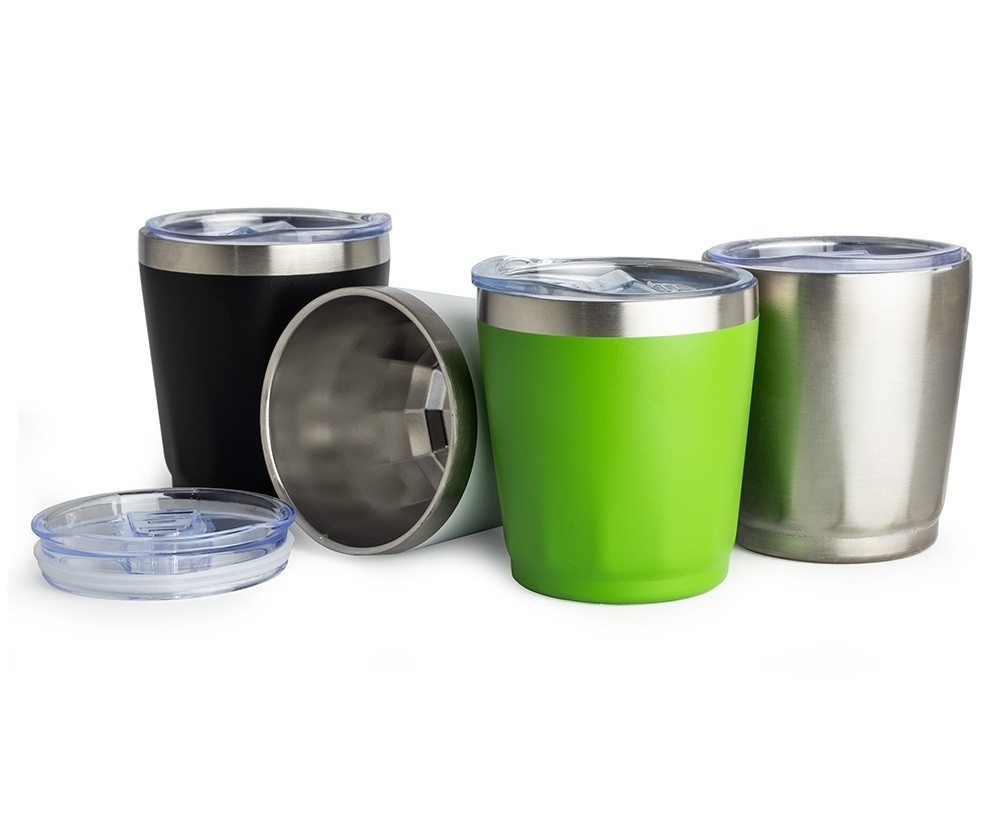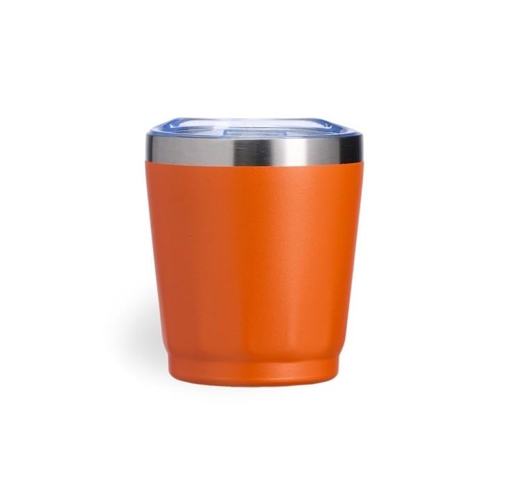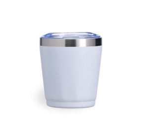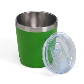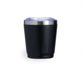 Copo térmico em inox com capacidade de 200ml. A parte interna preserva o frescor da bebida, enquanto a tampa com bocal, trava de segurança e vedação em silicone mantém tudo seguro e sem vazamentos. Personalização nas duas faces. Medidas aproximadas: Altura: 9,3cm | Largura: 8cm | Circunferência: 25,4cm | Peso: 123g