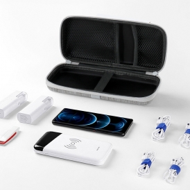 Estojo de proteção para eletrônicos, feito em nylon resistente à água. Contém bolsos telados e elásticos para fixação na área interna e externa. Personalização colorida em uma face. Medidas aproximadas: Largura: 10,9cm | Espessura: 4,6cm | Comprimento: 23,5cm | Peso: 92g