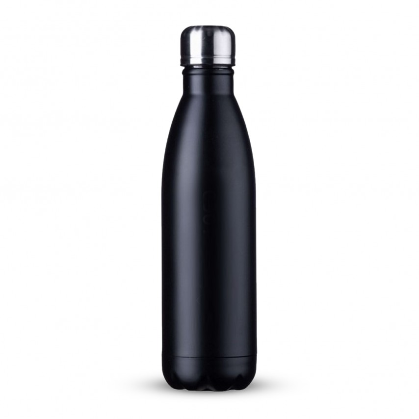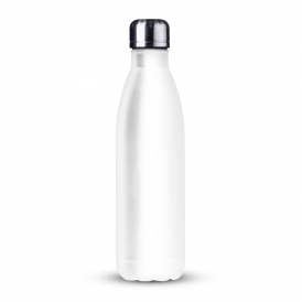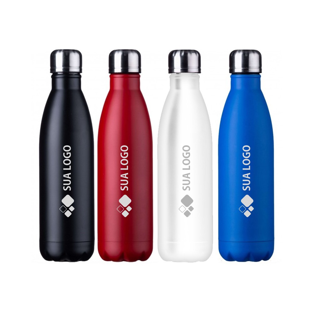 Garrafa de aço com capacidade para 750ml e tampa rosqueável. Personalização nas duas faces. Medidas aproximadas: Altura: 27,5cm | Largura: 7,3cm | Circunferência: 23cm | Peso: 193g