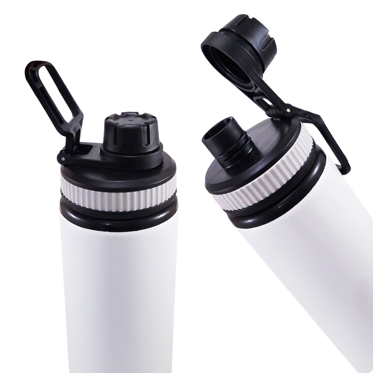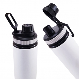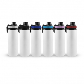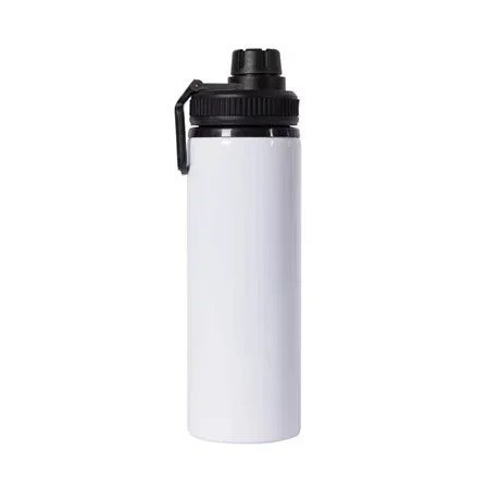Garrafa de alumínio com capacidade para 750ml, tampa com abertura rosqueável e acesso direto ao bico. Personalização nas duas faces. Medidas aproximadas: Altura: 24cm | Largura: 7cm | Peso: 160g