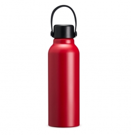 Garrafa de alumínio com capacidade de 800ml. Leve e resistente, a garrafa possui tampa plástica rosqueável com alça integrada para facilitar o transporte. Personalização nas duas faces. Medidas aproximadas: Altura: 23,5cm | Largura: 8,6cm | Circunferência: 23,1cm | Peso: 111g