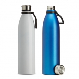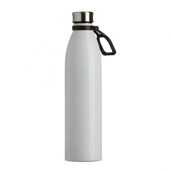 Garrafa de inox 1,1 litros com tampa rosqueável e alça plástica para transporte. Personalização nas duas faces. Medidas aproximadas: Altura: 30,5cm | Largura: 7,8cm | Circunferência: 24,4cm | Peso: 214g.