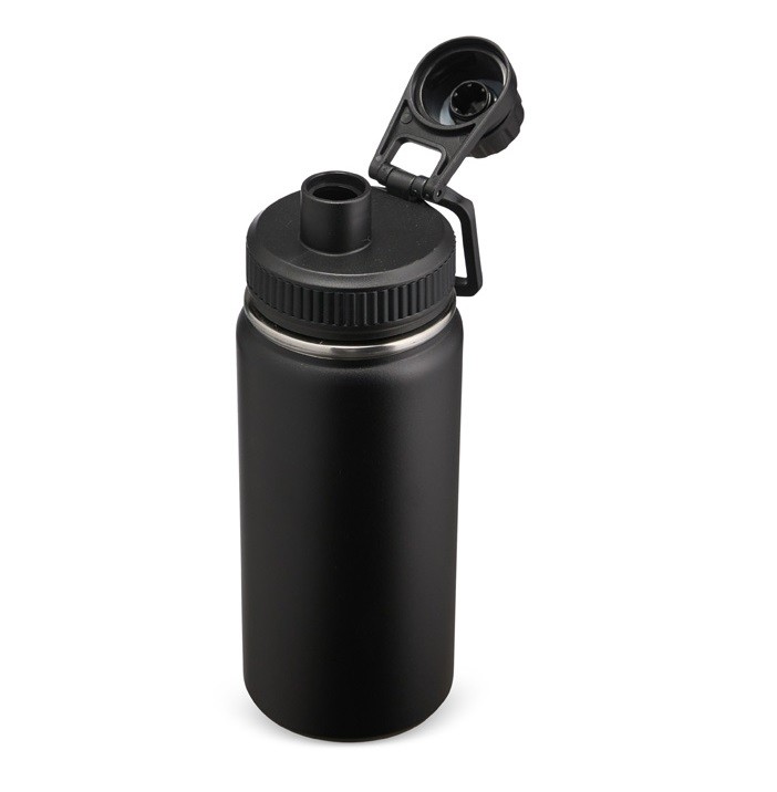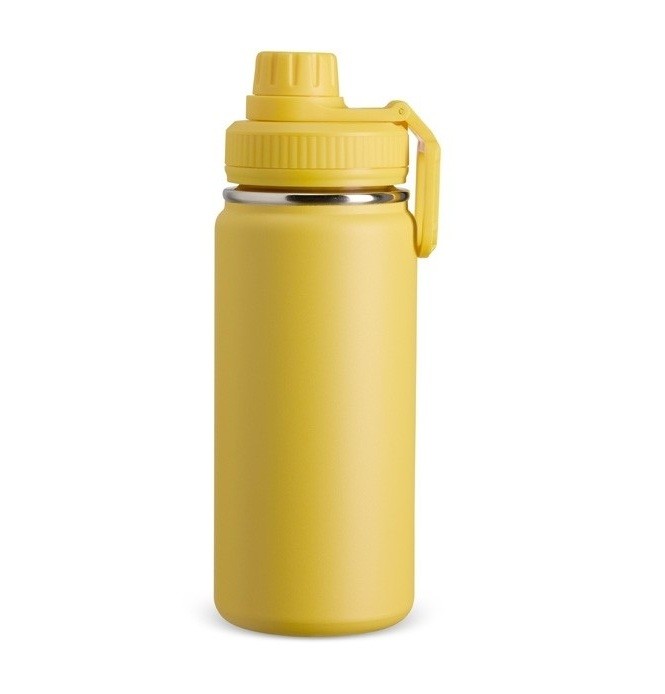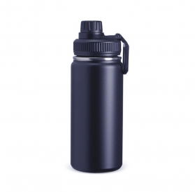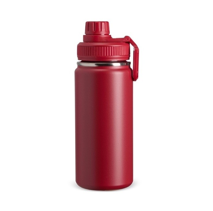 Garrafa térmica inox de capacidade de até 550ml. Conta com uma tampa rosqueável e uma alça que facilita o transporte. Personalização nas duas faces. Medidas aproximadas: Altura: 21cm | Largura: 7cm | Circunferência: 24cm | Peso: 298g.