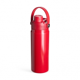 Garrafa térmica em inox com capacidade de até 600ml. Apresenta estrutura com parede dupla e isolamento a vácuo, permitindo conservar a temperatura de líquidos por mais tempo. Possui tampa plástica rosqueável com proteção para o bocal e alça fixa para transporte. Personalização nas duas faces. Medidas aproximadas: Altura: 23cm | Largura: 8cm | Circunferência: 23,3cm | Peso: 289g