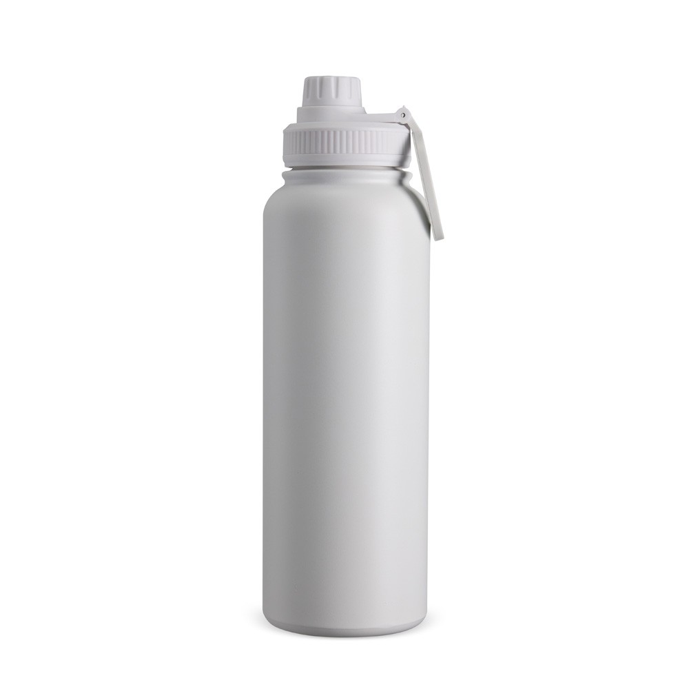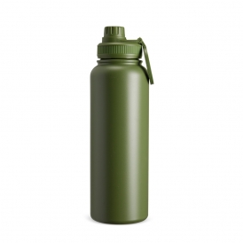 Garrafa térmica inox de capacidade de até 1,2 Litro. Conta com uma tampa rosqueável e uma alça circular magnética, compatível com smartphones iPhone da Apple. Personalização nas duas faces. Medidas aproximadas: Altura: 30cm | Largura: 9cm | Circunferência: 28,5cm | Peso: 505g.