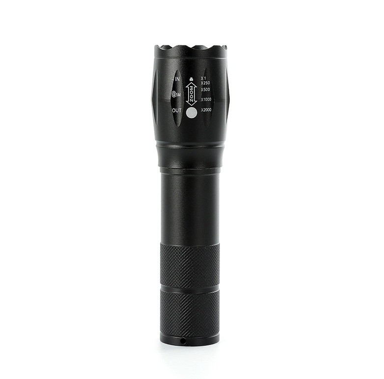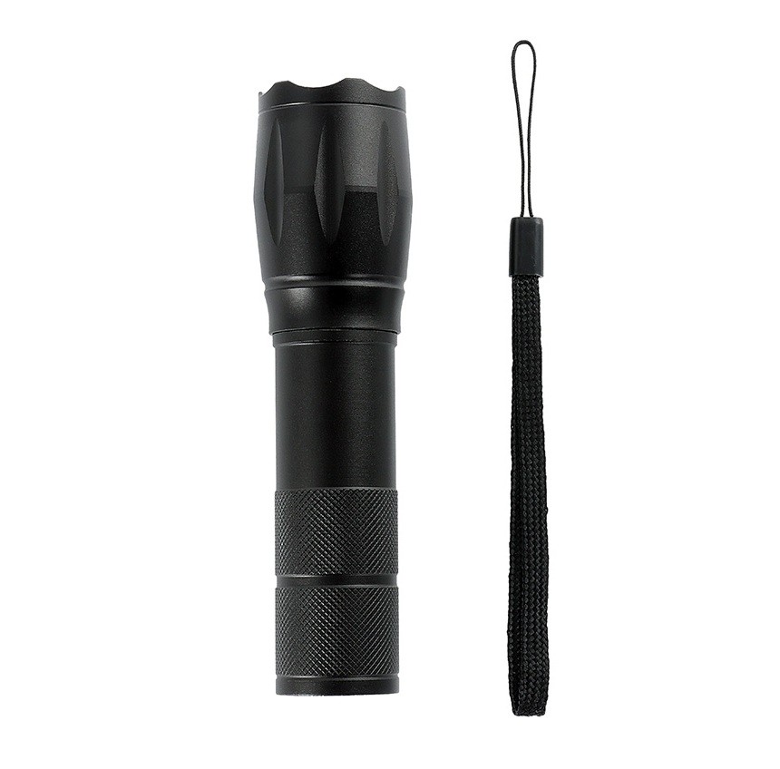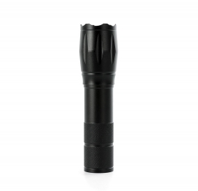 Lanterna led recarregável com zoom de regulagem e três estágios de iluminação, material metálico. Acompanha cordão de nylon e cabo USB-V8. Personalização em uma face. Medidas aproximadas: Largura: 3,3cm | Comprimento : 12,6cm | Peso: 102g