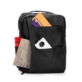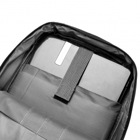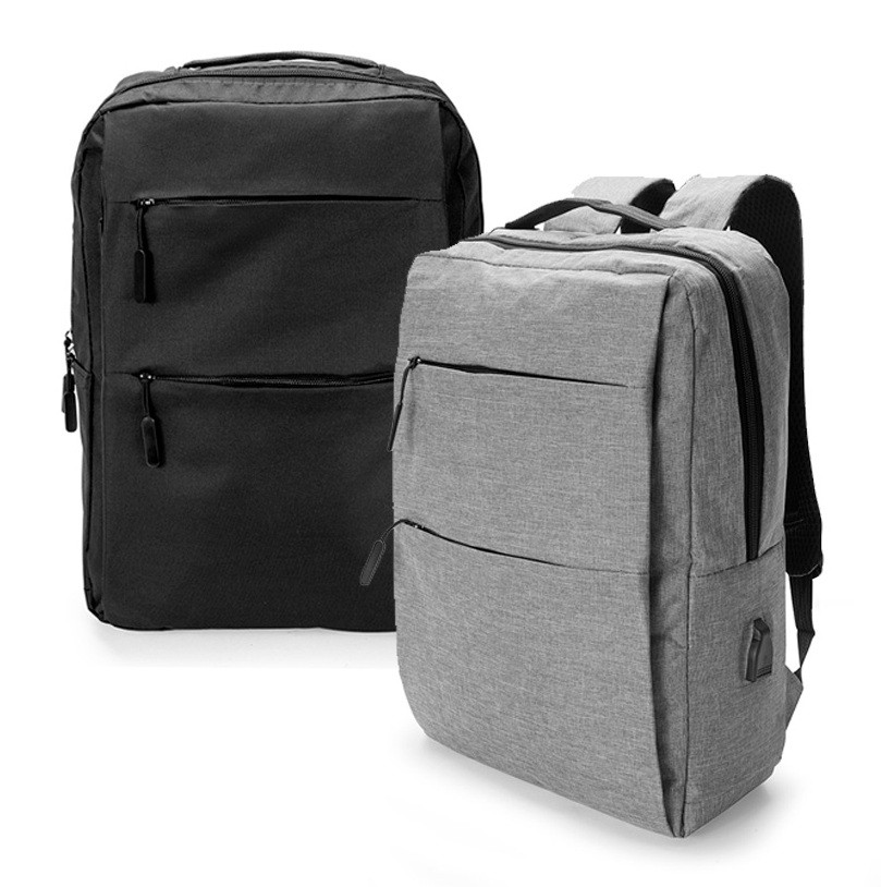 Mochila de nylon 17 litros com quatro compartimentos, sendo o principal com bolso para notebook 15´6. Com divisórias internas para acessórios, a mochila possui bolso lateral e suporte externo USB. Personalização em uma face. Medidas aproximadas: Altura: 42cm | Largura: 26cm | Profundidade: 10,7cm | Peso: 442g