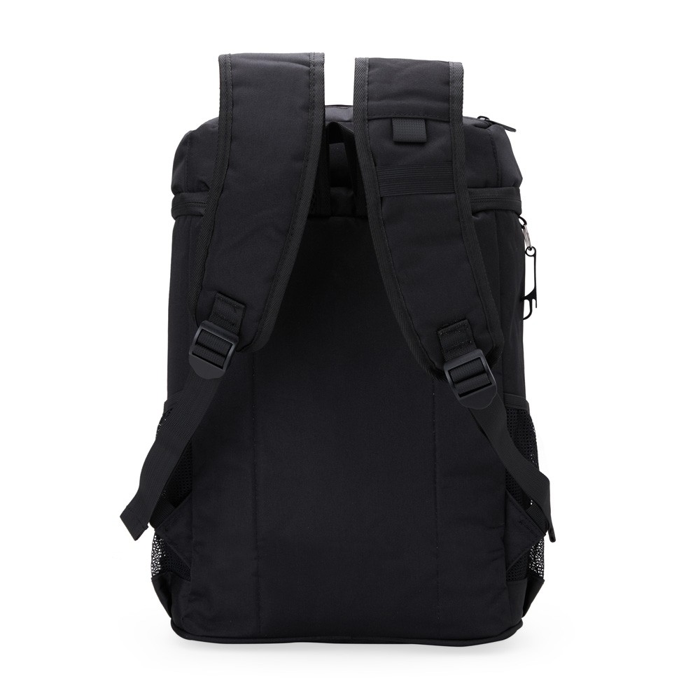 Mochila 32 litros em oxford, resistente à água com quatro compartimentos. Nas laterais possui bolsos de tela que oferecem fácil acesso a garrafas e outros itens. Personalização colorida em 1 face. Medidas aproximadas: Altura: 43,5cm | Largura: 30cm | Profundidade: 25cm | Peso: 670g