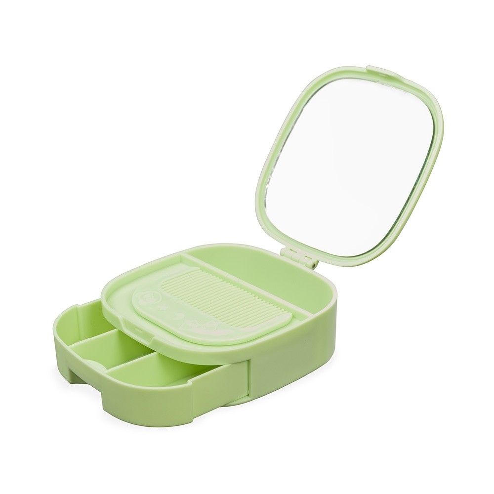 Este porta-joias feito em plástico é uma ótima opção para guardar objetos delicados com segurança. O organizador conta com espaço interno com dois compartimentos de tamanhos distintos e uma gaveta com três divisórias. Personalização colorida em uma face. Medida aproximadas: Altura: 3,5cm | Largura: 9,9 cm | Peso: 133g.