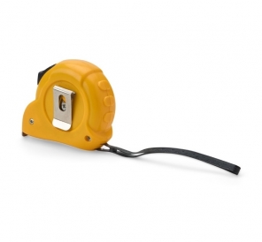 Trena de 5 metros com fita de aço com alcance de até 5 metros, ela também apresenta suas medidas em pés e polegadas. Conta com botão manual para manter a fita em uma medida fixa enquanto estiver apertado. O corpo da trena ainda possui uma presilha de metal e uma alça de borracha. Personalização colorida em 1 face. Medidas aproximadas: Altura: 6cm | Largura: 7cm | Espessura: 3,5cm | Peso: 121g